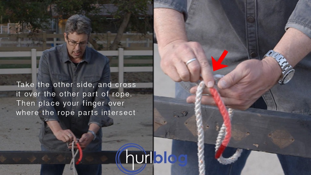 Take the rope in your other hand, and cross it over the other side to create an X.
