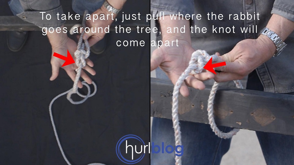 Another great thing about this knot is that it is easy to take apart. Just pull where indicated on the image below and the knot will come apart.