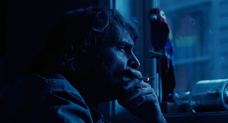 It suggests a longing for a past that may never have existed, a sense of loss and disillusionment that permeates the film. The blue-toned lighting in smoky interiors and nighttime scenes further enhances this atmosphere, creating a visual representation of Doc’s subjective experience.